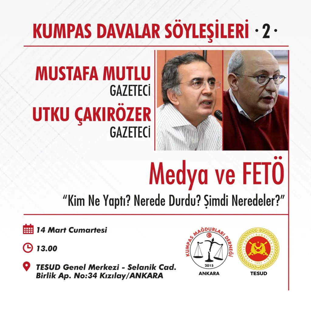 Kumpas davaları söyleşilerinde bu haftaki konumuz “Medya ve FETÖ”. Kim ne yaptı, nerede durdu, şimdi neredeler? Konuklar Gazeteci Mustafa Mutlu, Utku Çakırözer.